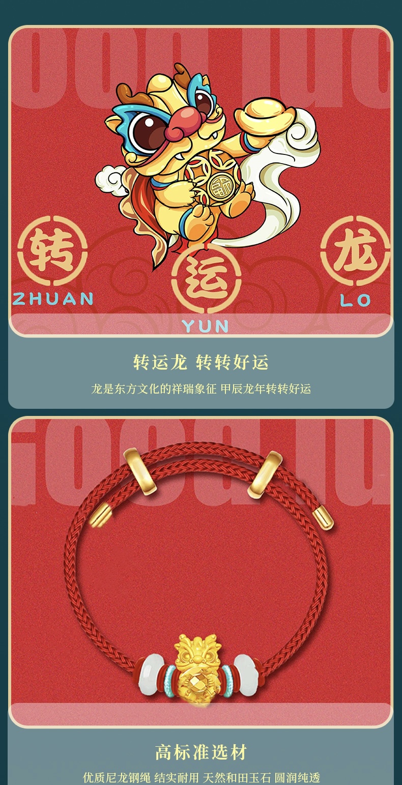 | 【Lucky dragon bracelet】originates from oriental aesthetic design, which means good luck and continuous good fortune in the Year of the Dragon. Using high-quality nylon red steel rope, high-precision laser technology, natural Hotan jade is round and pure, equipped with exquisite 3D card sleeve packaging, daily wear on the wrist, fashionable and elegant |