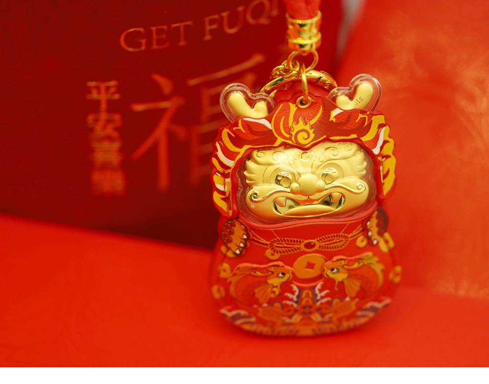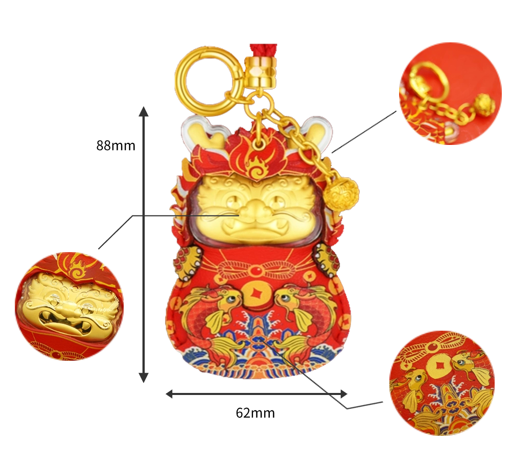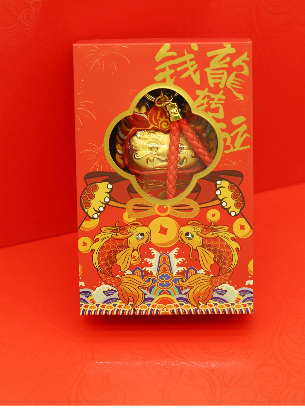 | The appearance of a lucky bag is adopted, combined with auspicious elements such as fortune-bringing tin cans, coins, sea cliff patterns, fire cloud patterns, and blessing knots, to create an art form that perfectly combines illustrations with auspicious meanings, which is meant to bring good luck and peace. | |