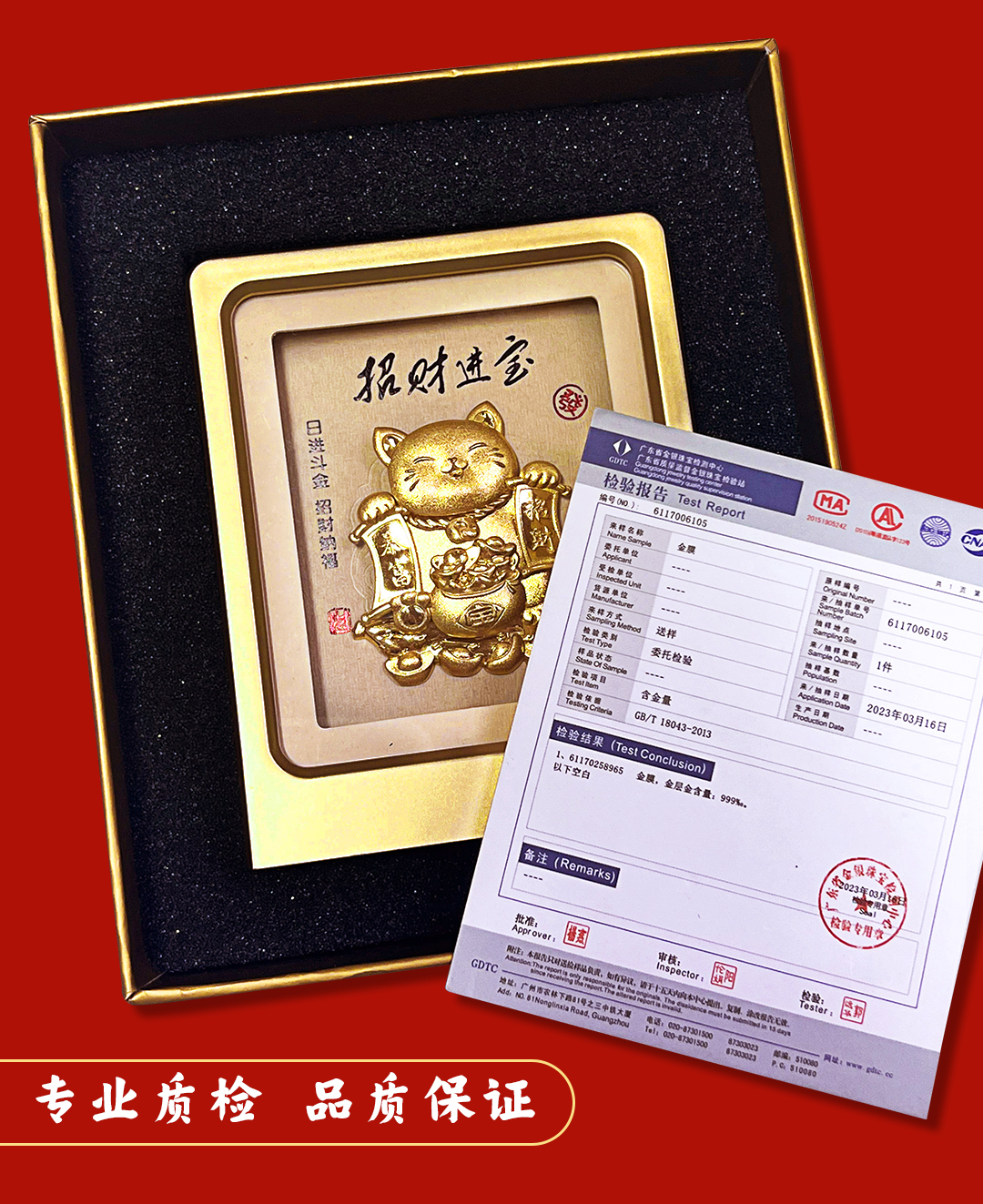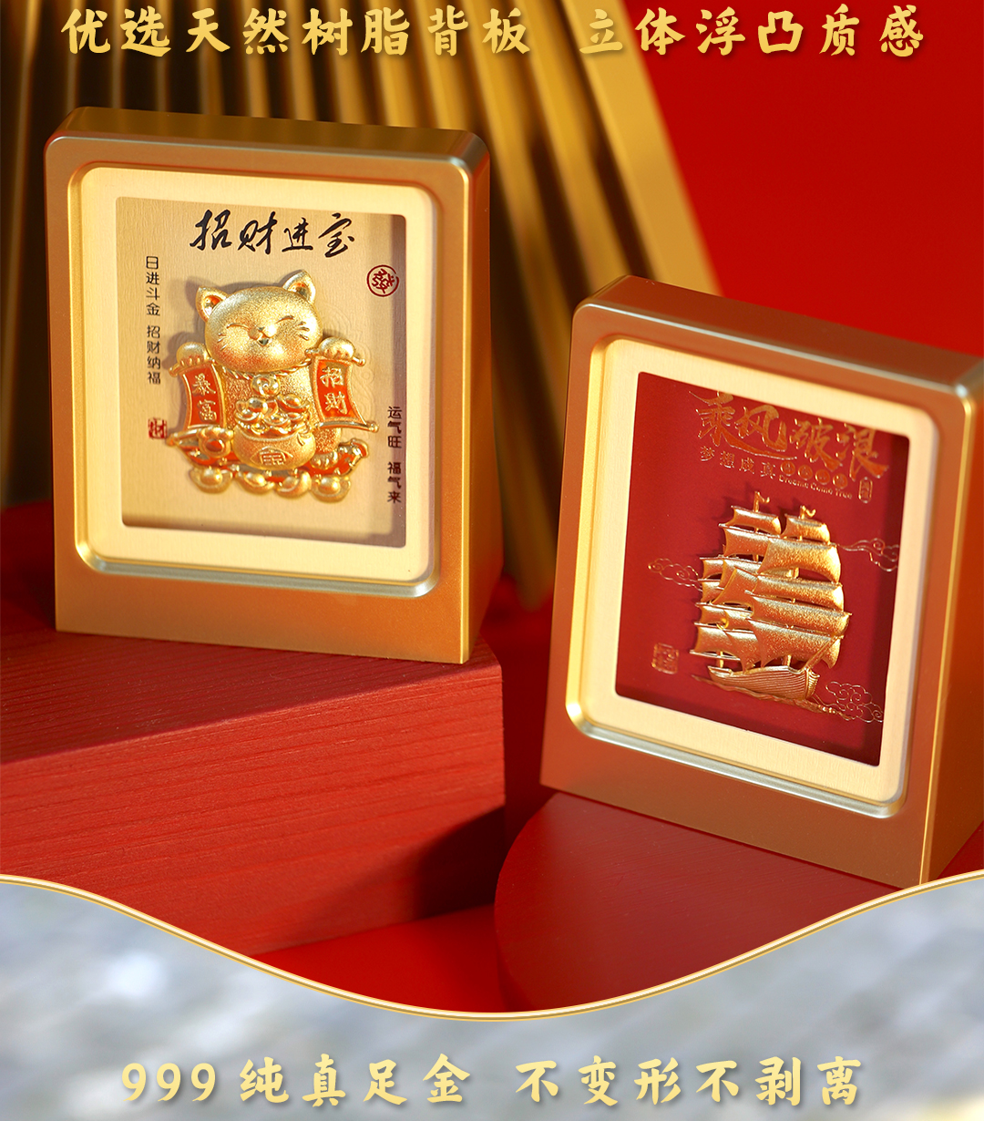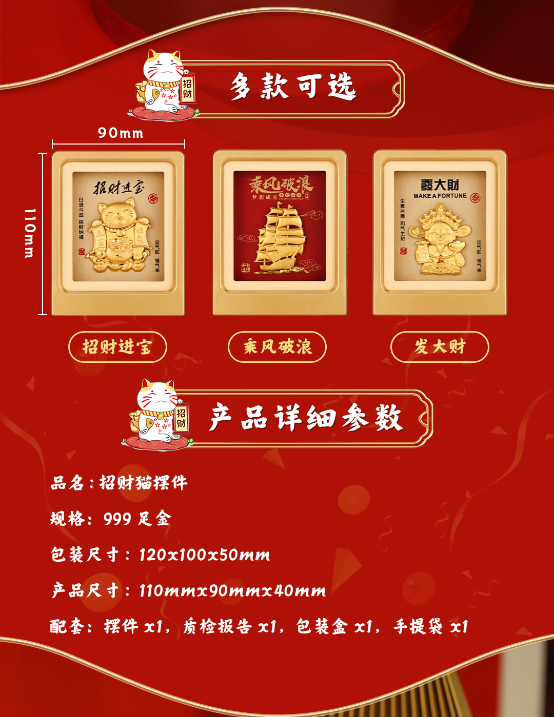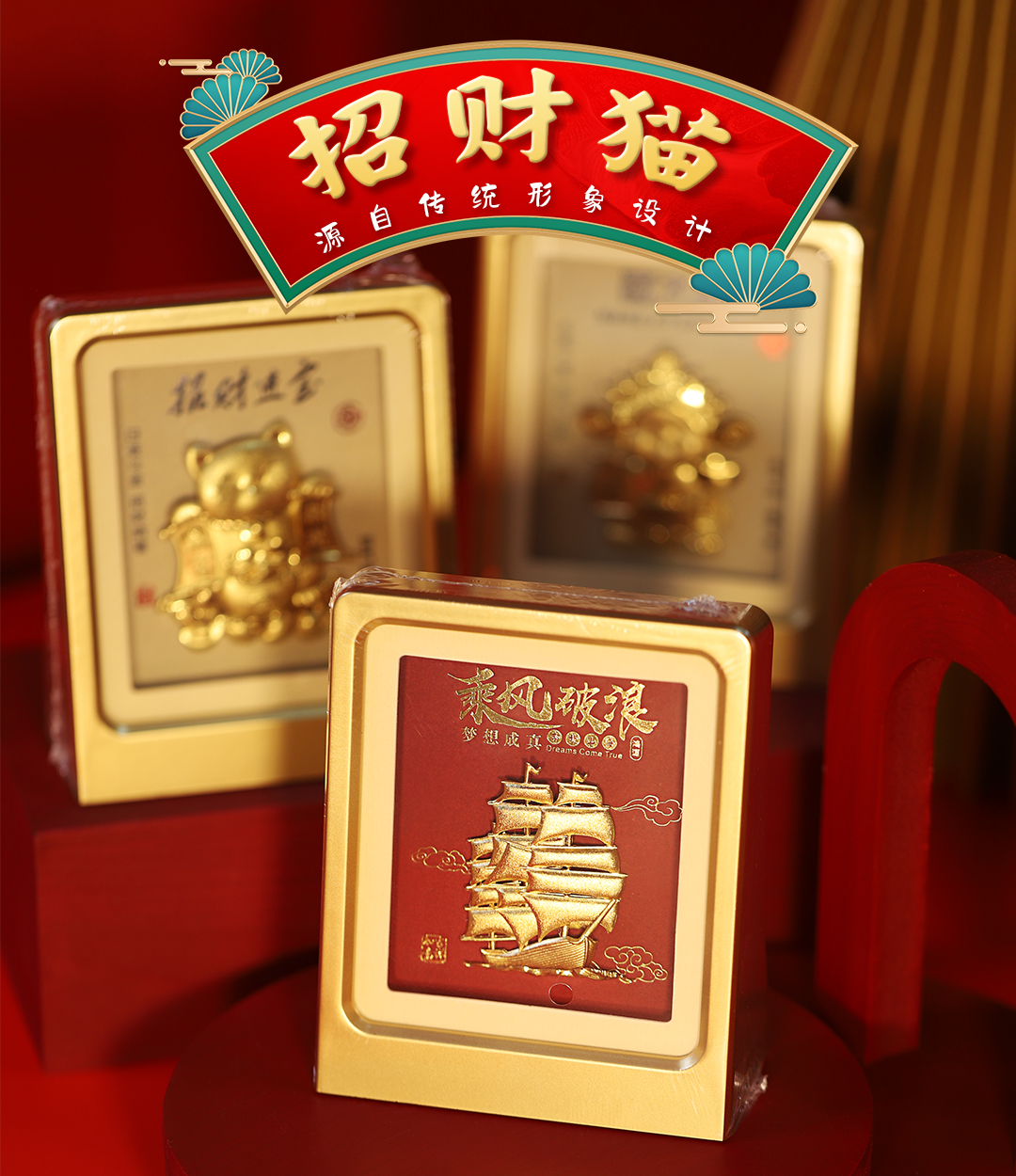 | Three gold foil desktop decorations: "Lucky Cat" means to bring you wealth, "Riding the Wind and Waves" means smooth sailing, and "Here Comes the God of Wealth" means a lot of money. You can put it in your home study, TV cabinet or bedside table, or next to your computer in the office. With a beautiful tassel gift box, you can give it as a meeting gift or a casual gift to your relatives and friends. |