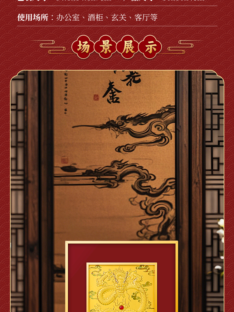 | The dragon has been regarded as the first auspicious sign since ancient times, implying good luck and auspiciousness. People pray for good luck and auspiciousness through traditional customs such as painting the dragon's eyes and dancing the dragon. It is also a symbol of luck and success. This symbolic meaning is not only reflected in the royal and religious fields, but also penetrates into all levels of society. In folk legends, the dragon is endowed with many beautiful meanings, such as wisdom, courage and good luck. Hanging a decorative painting of a dragon on the wall can increase the auspicious atmosphere, implying wealth from all directions, and good fortune. |