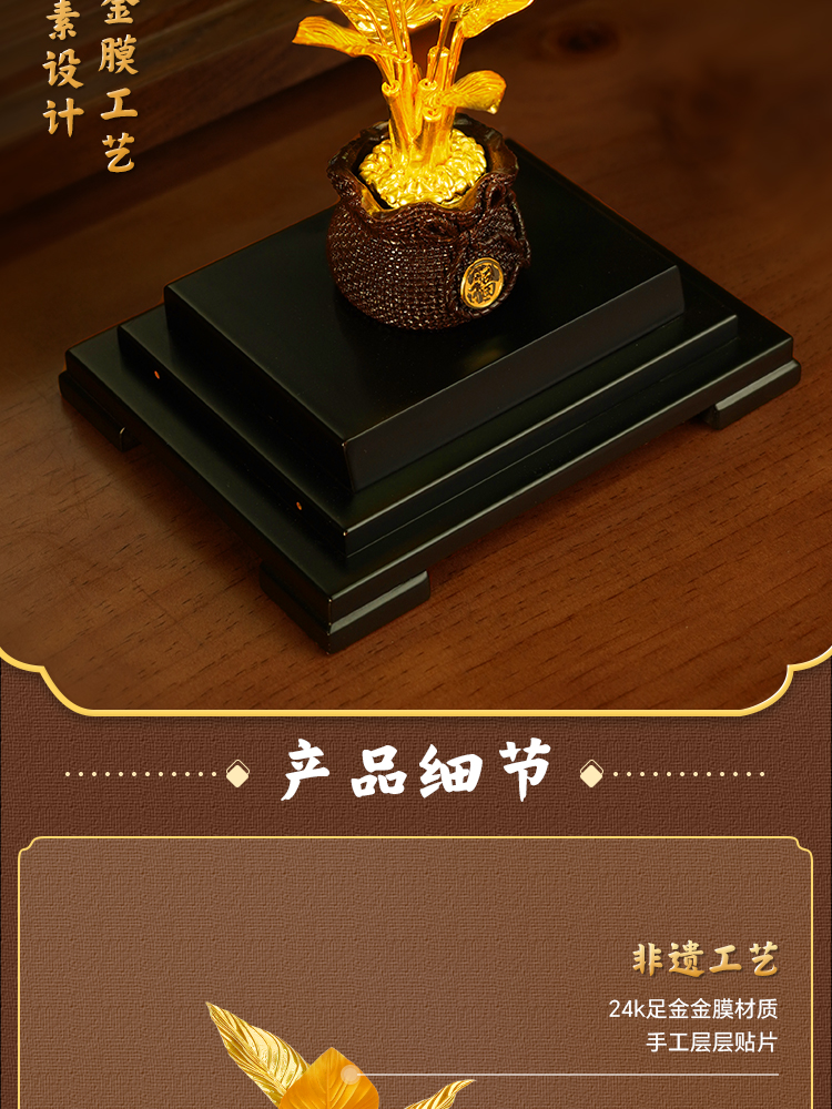 | Product accessories | 24KGold Leaf Ornament*1, Acrylic protective cover*1, Quality inspection report*1, Packaging box*1, Gift bag*1 |