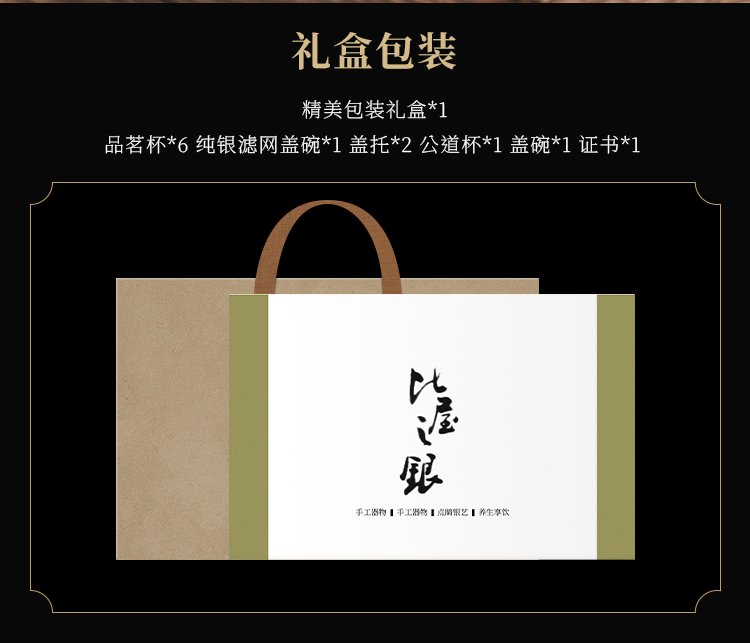 | Product accessories | Teacups*6, tea strainer*1, Fairness cup*1, Lidded bowl + lidded bowl holder*1, Lid holder*1, Quality inspection certificate*1, Packaging box*1, Handbag*1 |